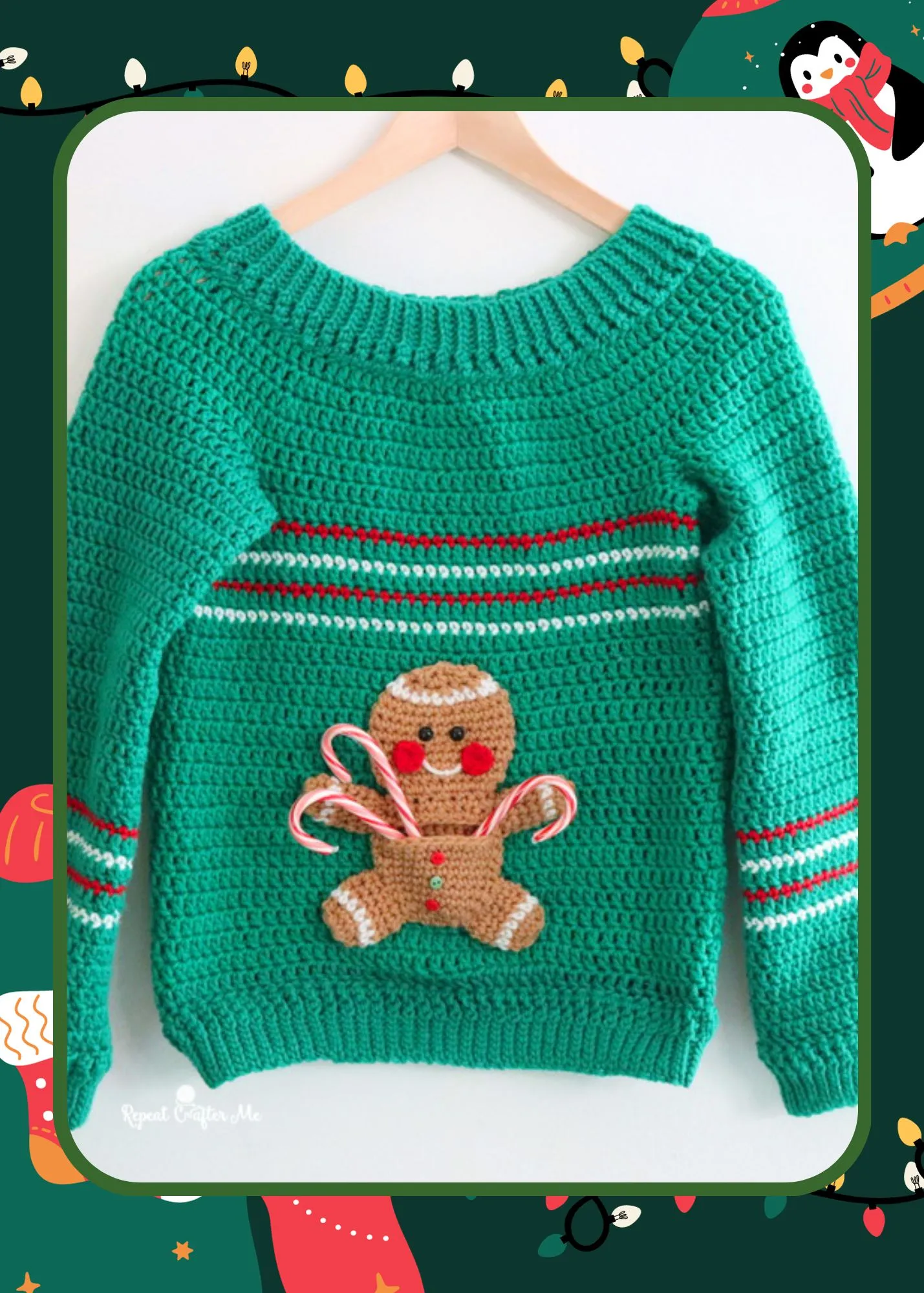 Decorate your sweater with gingerbread man cut outs, frosting details, and candy buttons, turning yourself into a delicious holiday treat.