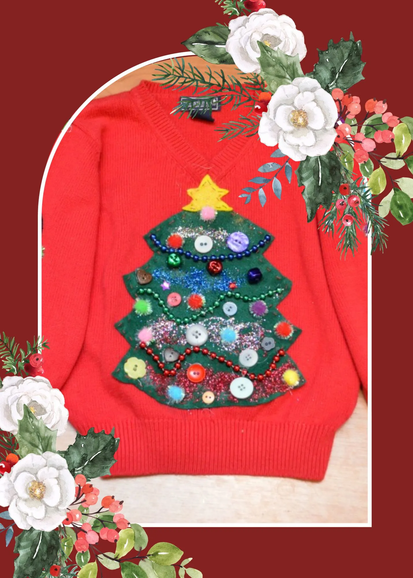 • Final Touches: Review your sweater and make any final adjustments or additions as needed. Ensure that all decorations are securely attached.