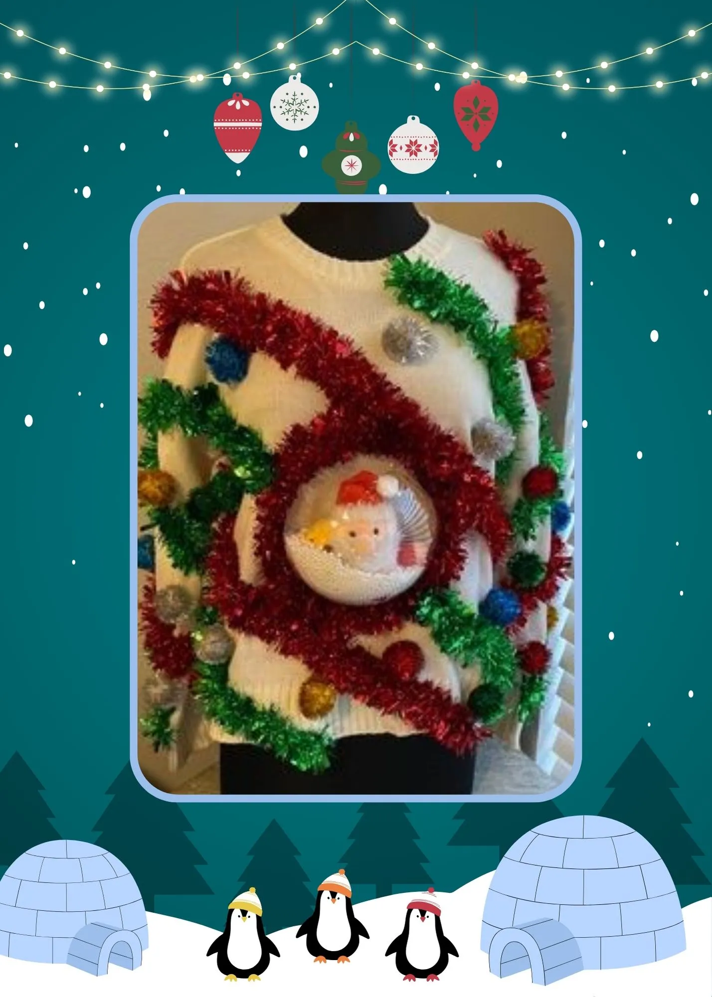 • Layer and Overlap: To make your sweater truly “ugly,” layer and overlap decorations. Don’t be afraid to go overboard with ornaments, tinsel, and bows.
