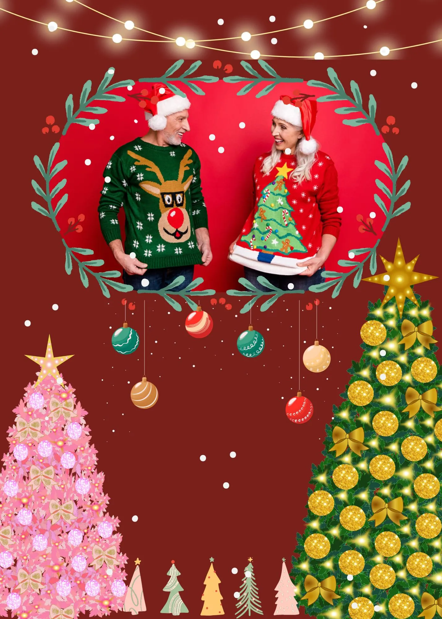 Coordinate with your partner to create a matching pair of ugly Christmas sweaters. Consider complementary themes like Mr. and Mrs. Claus, elves, or gingerbread cookies.
