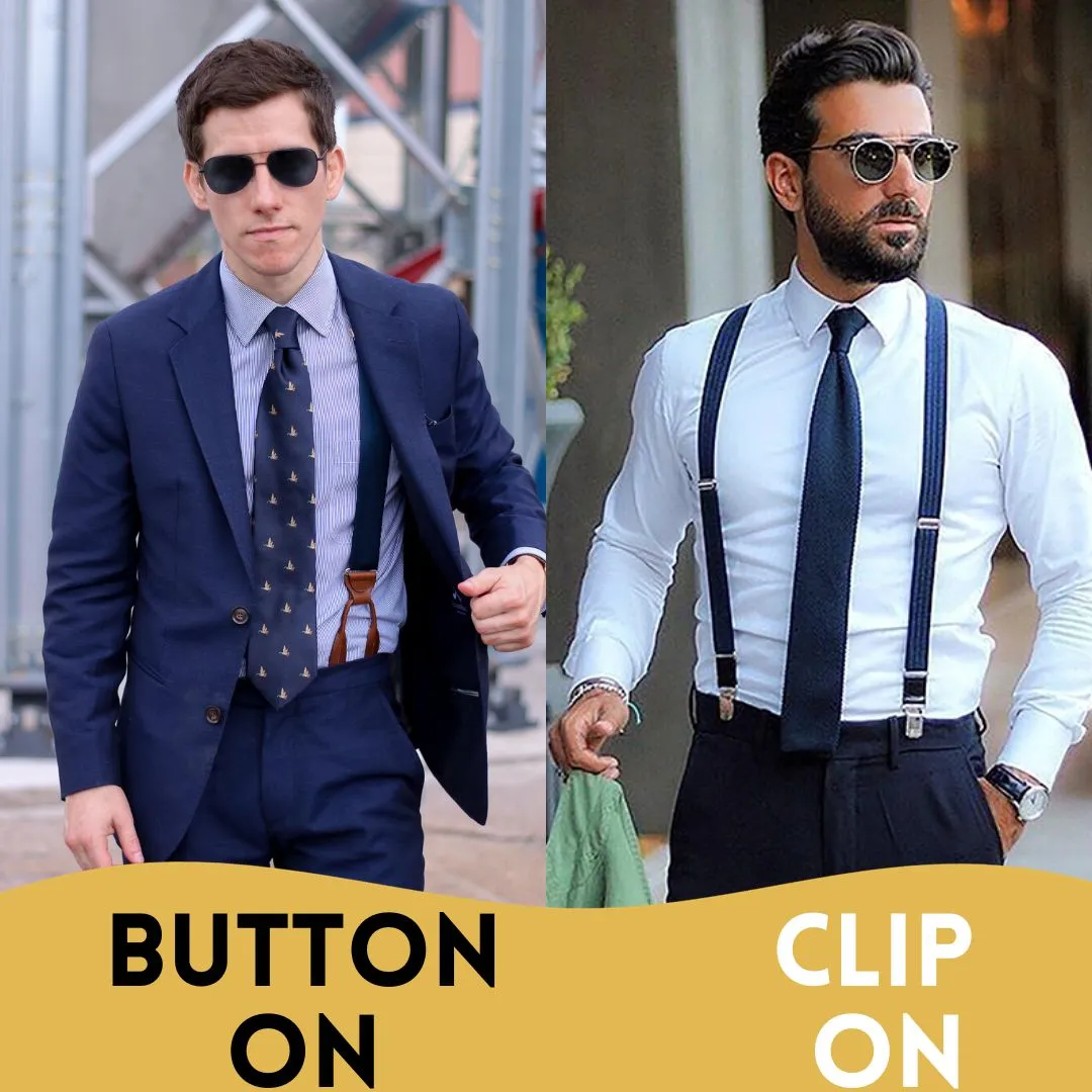 • Button-On Suspenders: These require pants with buttons or loops sewn inside the waistband. They offer a more traditional and secure option, often preferred for formal occasions.