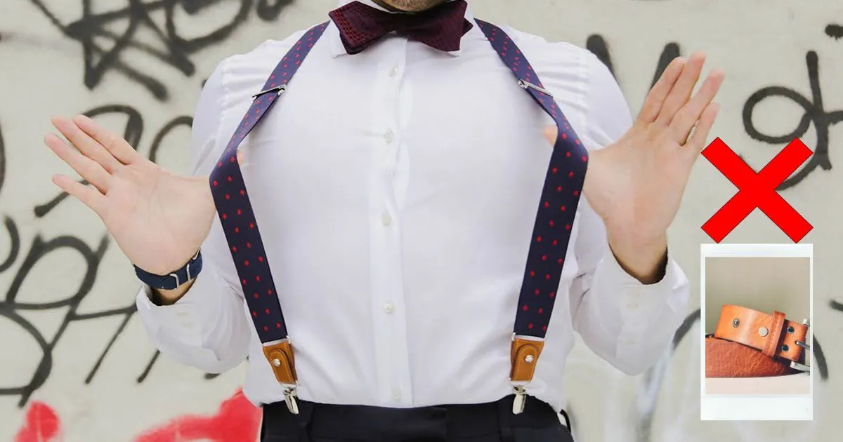 Combining suspenders with a belt is generally not recommended in fashion as it can create a bulky and redundant look, serving the same purpose. It’s best to choose one or the other for a more streamlined appearance.
