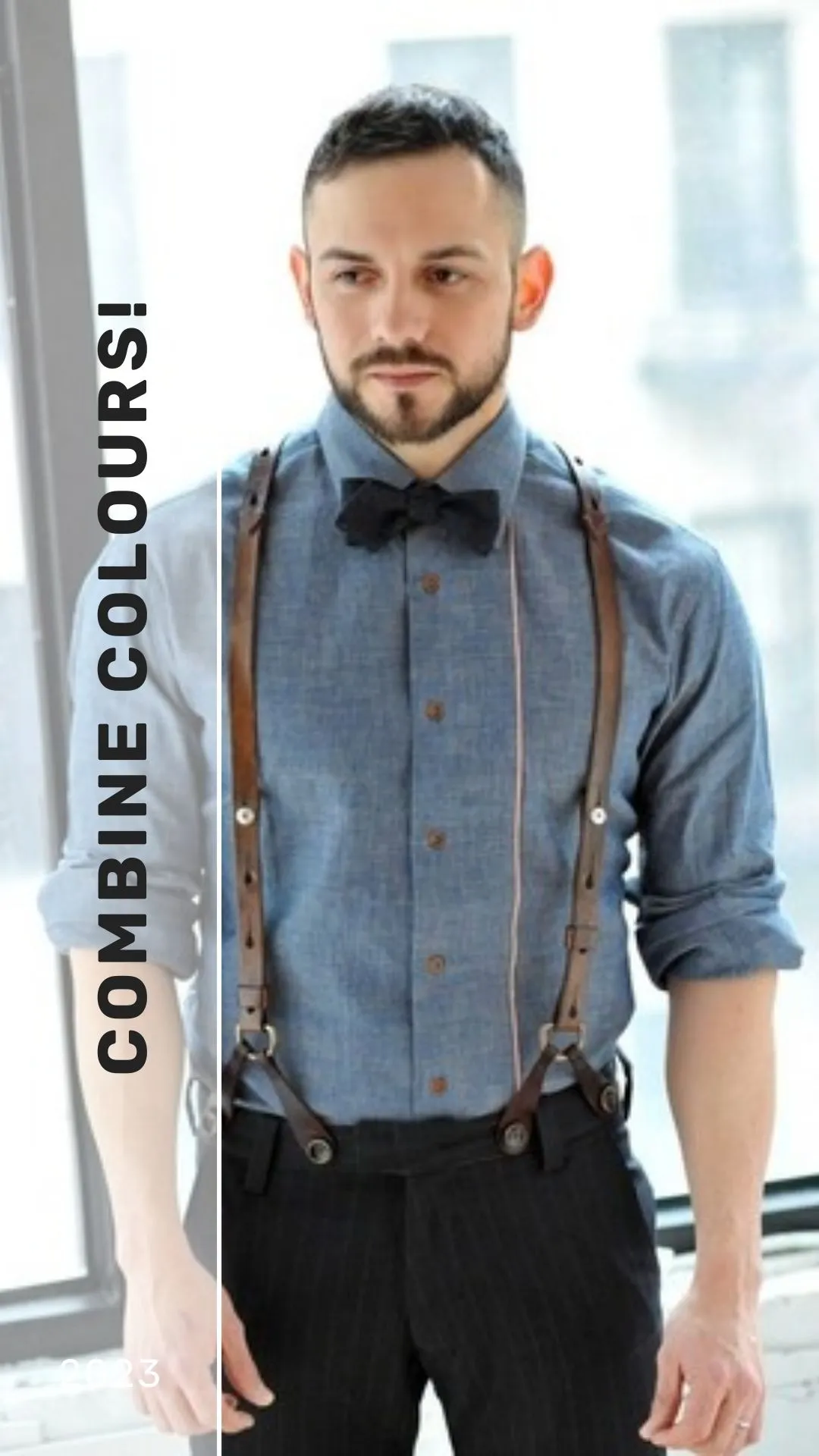 • Coordinate: Match or contrast suspenders with your outfit.