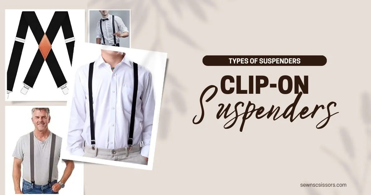 There are several types of suspenders, including clip-on suspenders, button-on suspenders, and Perry suspenders.
