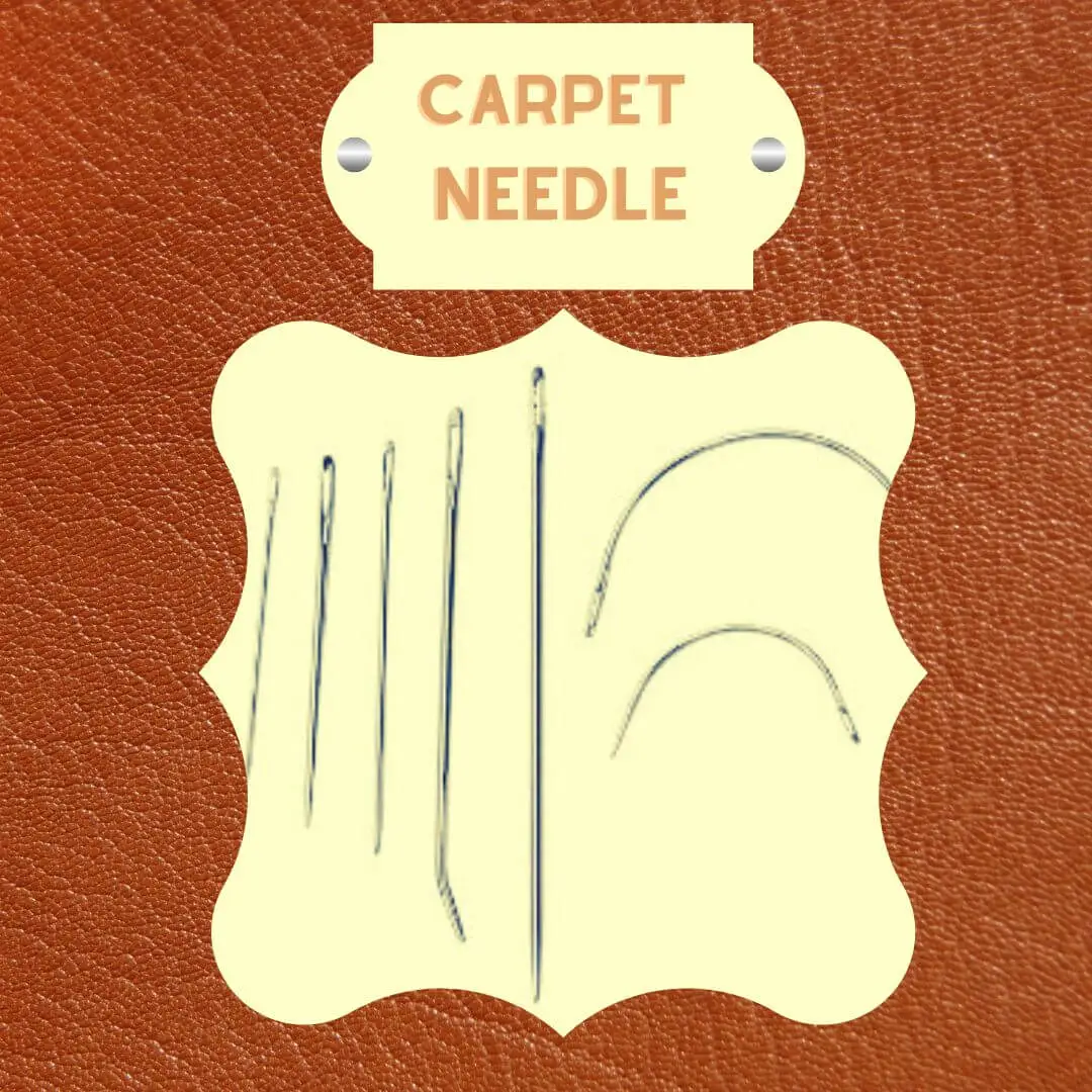 Carpet needles are sturdy, curved needles primarily used for sewing thick materials like carpets, but they are also suitable for heavyweight leathers. They are often employed in leathercraft projects that require strength and durability.